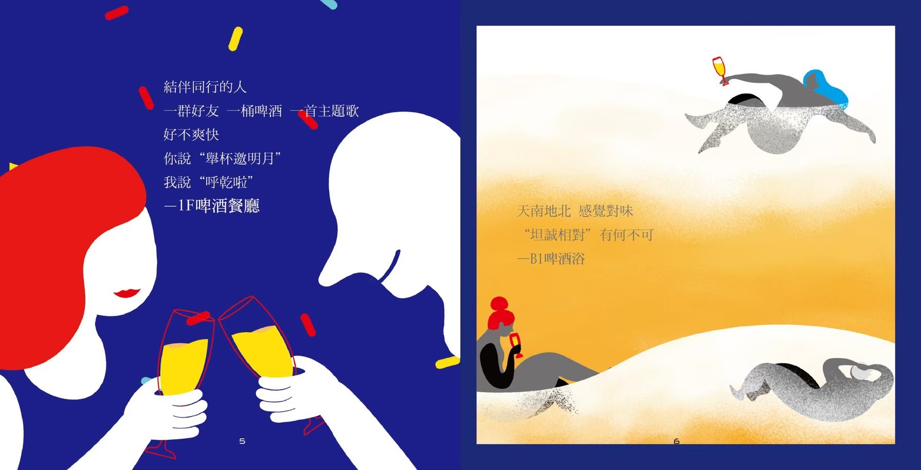 新聚焦在空間視覺上給予了極大張力,設計了金黃色的萬花筒走廊。當住客步入飯店,鏡面反射出的黃光宛如穿梭在飽滿的啤酒液體與泡沫中,讓人一進門就開始「微醺」。